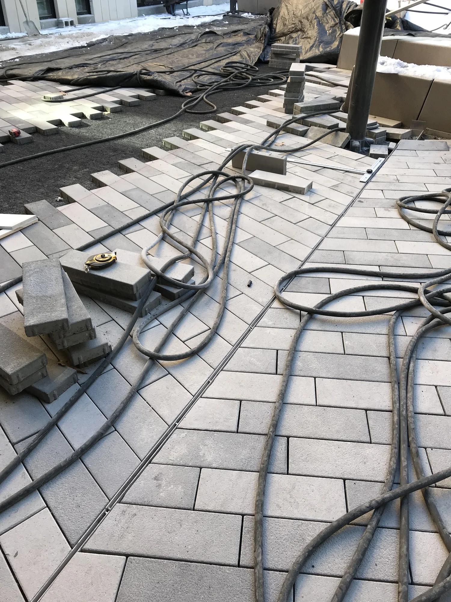 plan prior to VE; ultimately, all of the planting and walls in the paved area were removed and we were limited to a quantity of 2 trees